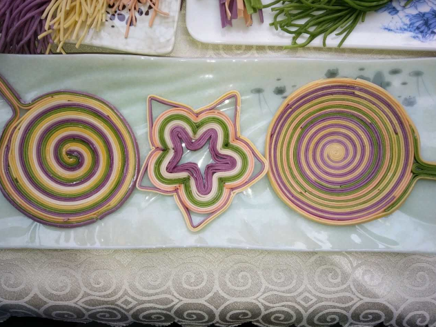 哦,原來(lái)是五彩燒賣(mài)皮還有七彩蔬菜面。別不以為然,這些你都見(jiàn)過(guò)嗎?