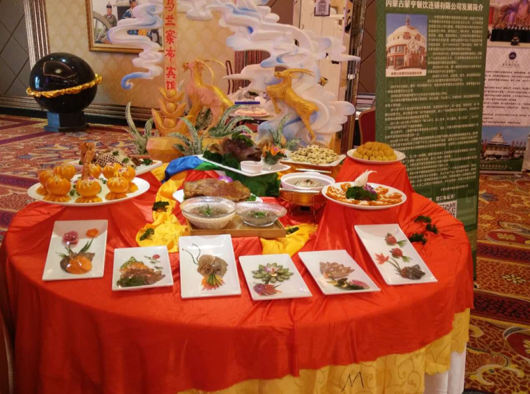 內(nèi)蒙古飲食文化民族特色濃郁、歷史傳承悠久,烹調(diào)技藝精湛,在世界上享有盛譽。本屆內(nèi)蒙古美食文化節(jié)為著力打造內(nèi)蒙古地方菜系和蒙餐菜系成為全國第九大菜系,共邀來自全區(qū)12個盟市的100多位廚藝高手參賽,制作了600多道美食、名點。展會突出展示了內(nèi)蒙古地方食材和蒙餐特色,參加展示的20桌宴席80%是蒙餐,從食品雕刻、熱菜制作、名點制作、涼菜拼擺、奶茶制作等五項廚藝比賽中,均以突出民族特色和地方特色為評判標準。