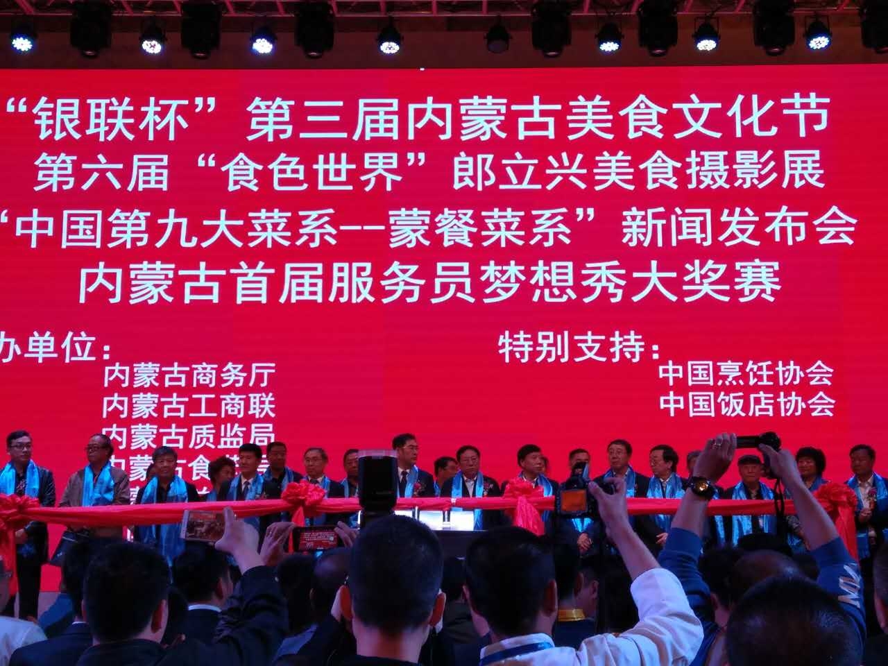 4月16日,“銀聯(lián)杯”第三屆內(nèi)蒙古美食文化節(jié)在呼和浩特市隆重開幕。本屆美食文化節(jié)由自治區(qū)商務(wù)廳、內(nèi)蒙古工商聯(lián)、自治區(qū)質(zhì)量技術(shù)監(jiān)督局、自治區(qū)總工會、自治區(qū)食品藥品監(jiān)督管理局、自治區(qū)餐飲與飯店行業(yè)協(xié)會共同舉辦。來自中國烹飪協(xié)會、中國飯店協(xié)會、中國飯店名廚委,以及全區(qū)各盟市餐飲行業(yè)的代表、企業(yè)家及業(yè)界人士計500多名代表參加美食節(jié)開幕式。